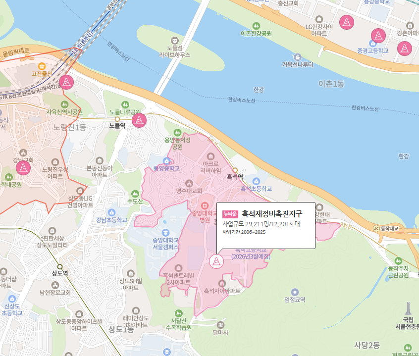 다만 흑석9보다 한강 접근성은 떨어지나, 보라매·중앙대·노량진 3방향 생활권 활용 가능.